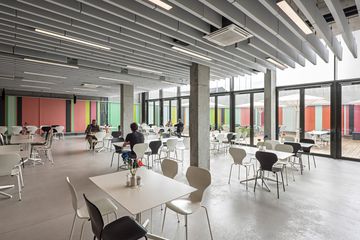 the focus was kept on the community - each communal zone should be easily accessible . in the basement there is a fitness room as well as the canteen with an atrium.