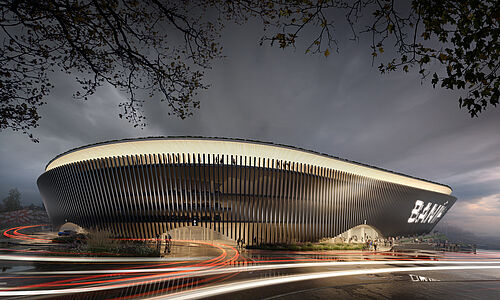 the construction using wood and recycled concrete reduces emissions, while green roofs and photovoltaics use energy and water efficiently. the arena demonstrates how contemporary architecture combines ecological responsibility with urban quality of life.