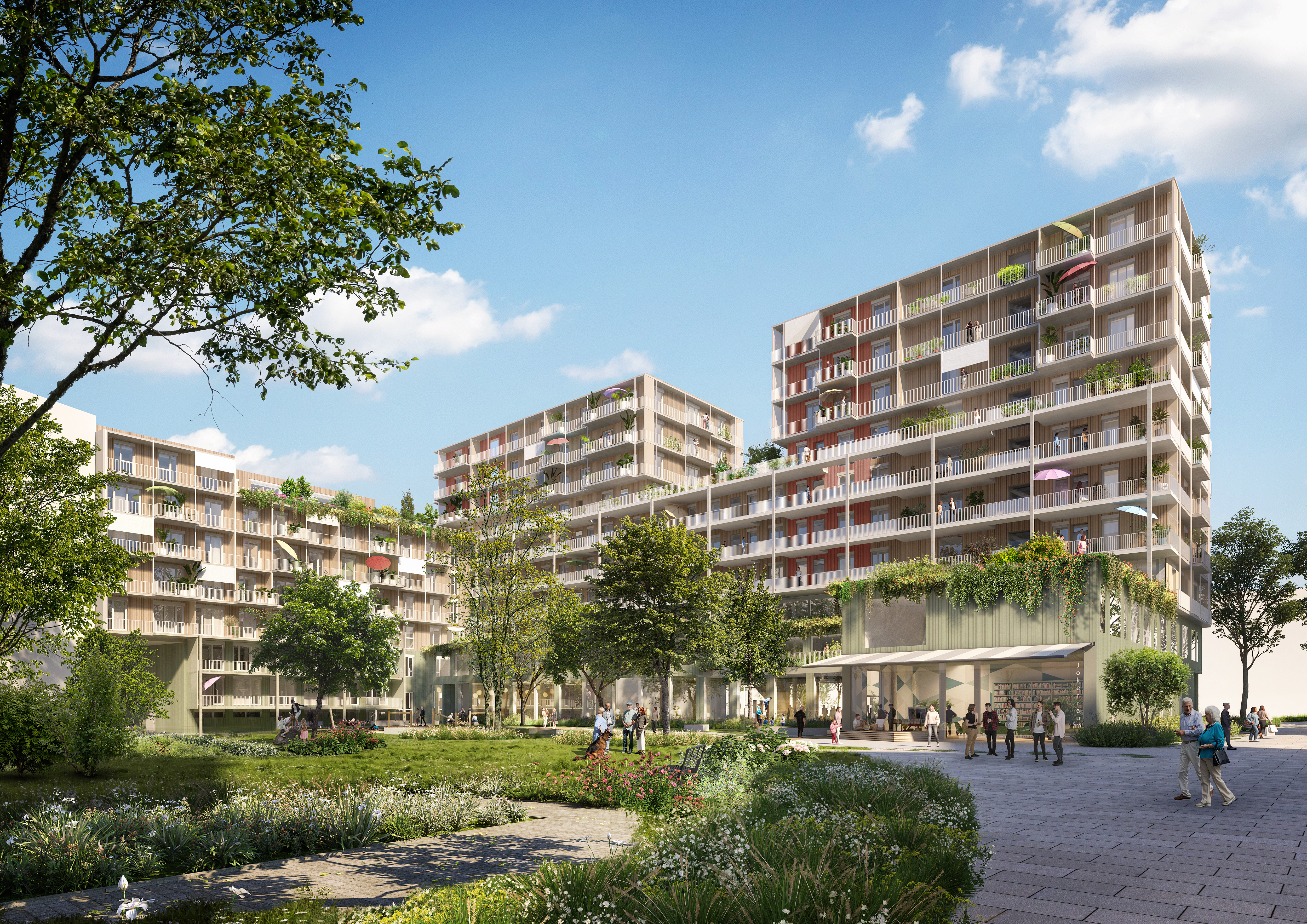 "luv + lee" combines state-of-the-art ecological standards with innovative climate adaptation techniques. features like green facades, biodiverse green roofs, and a sophisticated rainwater management system contribute to an environmentally friendly community. intelligent structural activation, greywater reuse, and co₂-reduced building materials not only protect the environment but also lower ongoing costs.