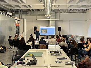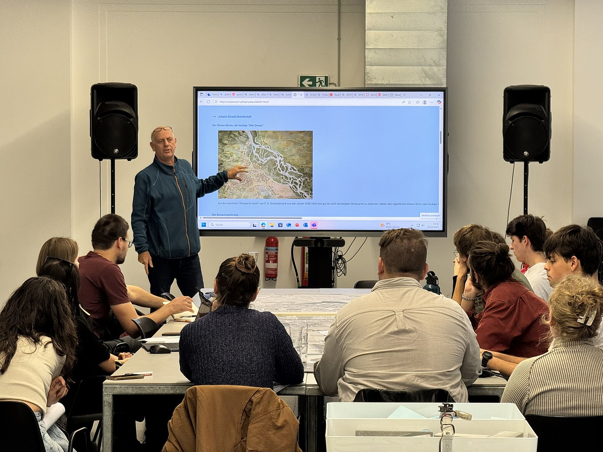 dieses semester werden die student*innen vor die aufgabe gestellt mit dem bestand des ehemaligen opel-werks aspern zu arbeiten und die struktur in einen zukunftsfähigen stadtbaustein zu verwandeln. die zusammenarbeit wurde mit einer exkursion nach wien mit besichtigung des bauplatzes und einem besuch im büro für den ersten workshop, gemeinsamen mittagessen mit dem team von querkraft und einem impulsvortrag von christoph chorherr gestartet.