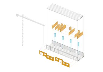 die serielle, lineare grundstruktur bietet große flexibilität in der anordnung verschiedenster wohnungstypen und ermöglicht so eine gute durchmischung der bewohnerstruktur sowie eine nachhaltige benutzbarkeit. als besonderheit im bereich des wohnungsbaus wurde zur steigerung der langfristigen nutzungsvariabilität das gesamte objekt als stahlbetonskelettbau mit minimierter tragstruktur ausgeführt: einzelstützen statt betonwände. die ökologischen außenwände sind als vorgefertigte, gedämmte holzriegelbauteile mit unbehandelter lärchenholzschalung ausgebildet. das fassadenbild wird durch auskragende fertigteil-loggien und -balkone strukturiert und wurde als komplettbauteil aus der fabrik vor ort montiert. es entsteht ein freies spiel.