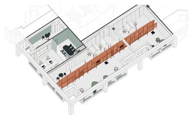 entwurfsaufgabe war es, die beiden abteilungen in den räumlichkeiten der ehemaligen buchhandlung unterzubringen. dies umfasst sowohl einen großzügigen bereich für den schalter- und wartebereich, als auch bereiche für das backoffice, einen besprechungsraum und büros für das IWC.