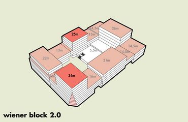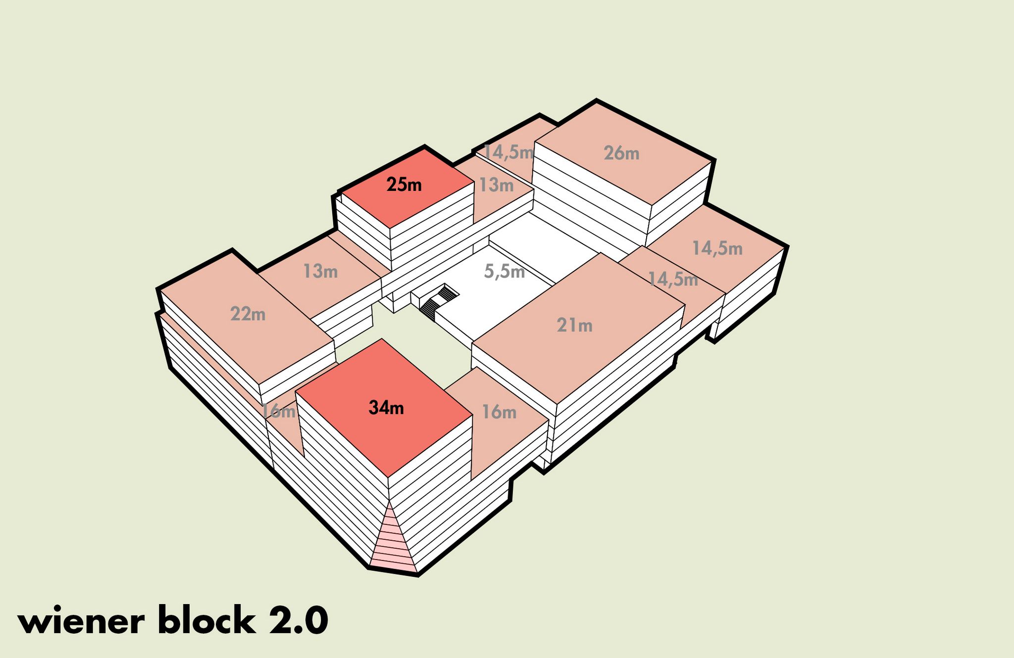 die traditionelle blockbebauung erfährt eine zeitgemäße umgestaltung durch unterschiedliche hochpunkte und begrünung der fassaden- und dachflächen. das entstehende dynamische stadtbild verbessert die durchlüftung und das mikroklima. situiert zwischen dem augarten und dem nordwestbahnhof-entwicklungsgebiet liegt das projekt in einer attraktiven innerstädtischen wohnlage. der wiener block 2.0 prägt ein modernes, soziales und nachhaltiges wohnkonzept.