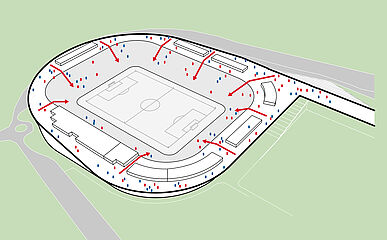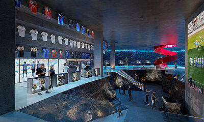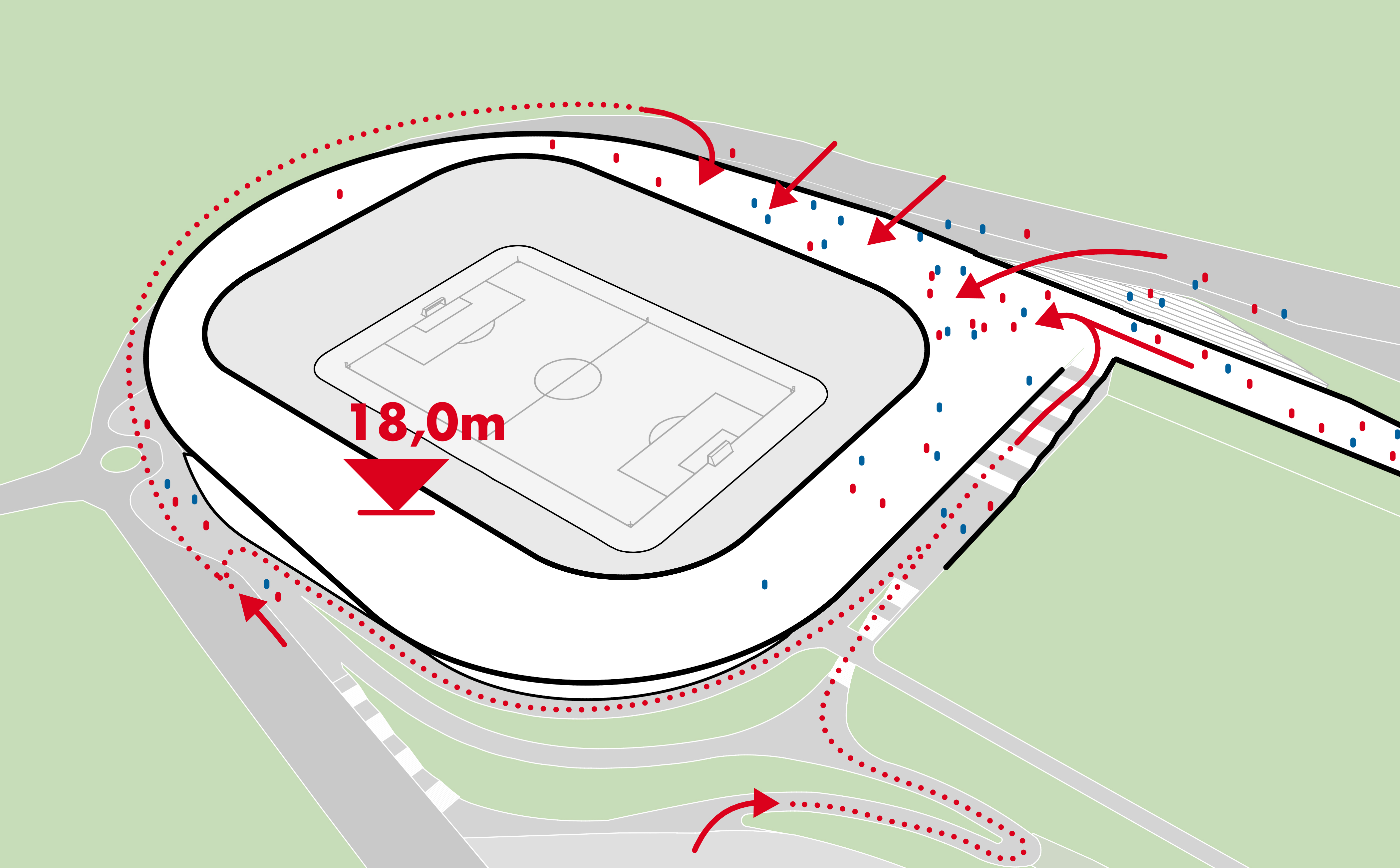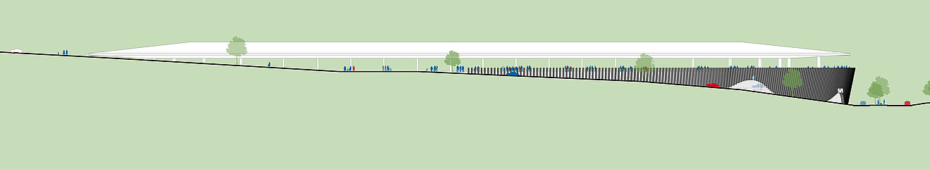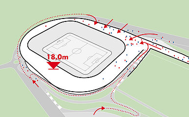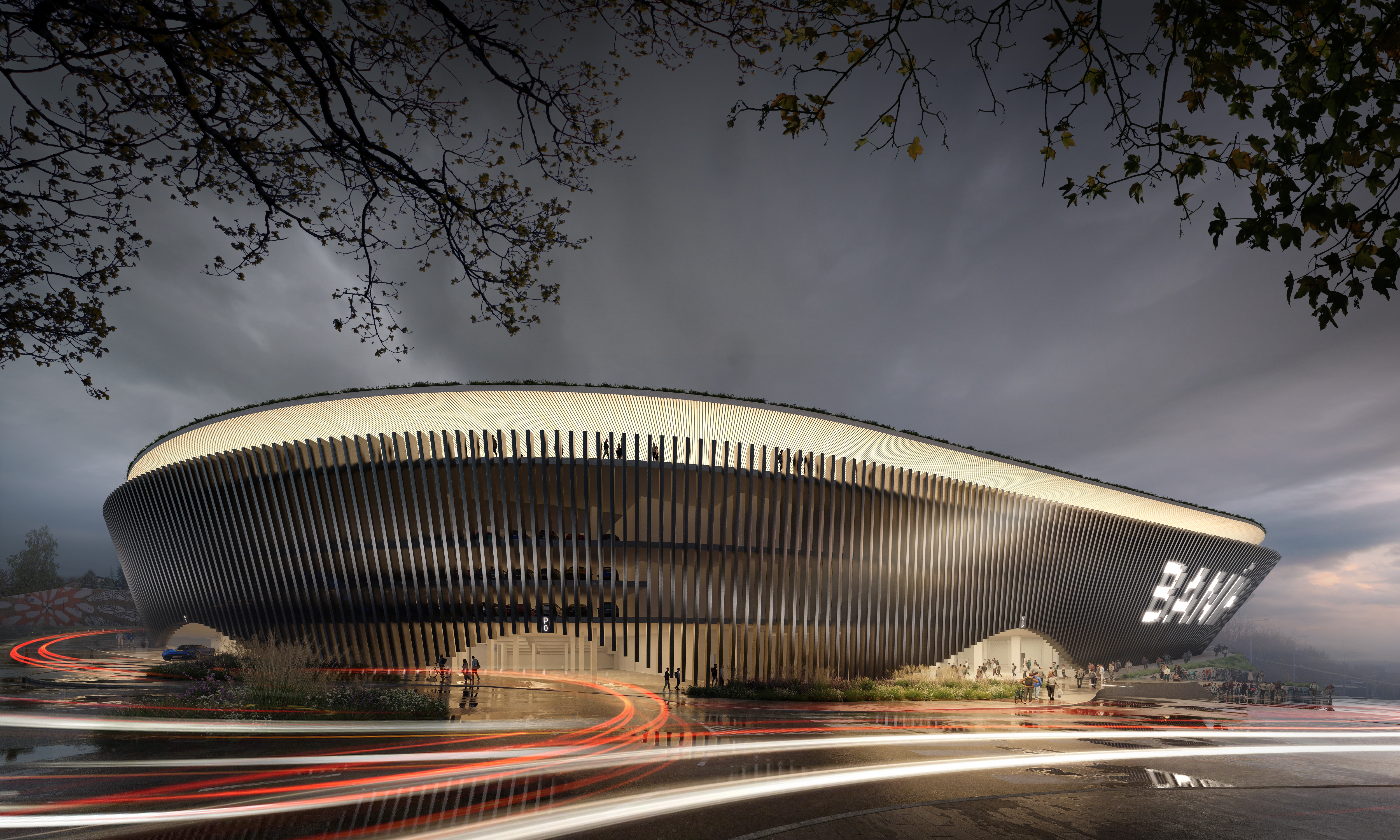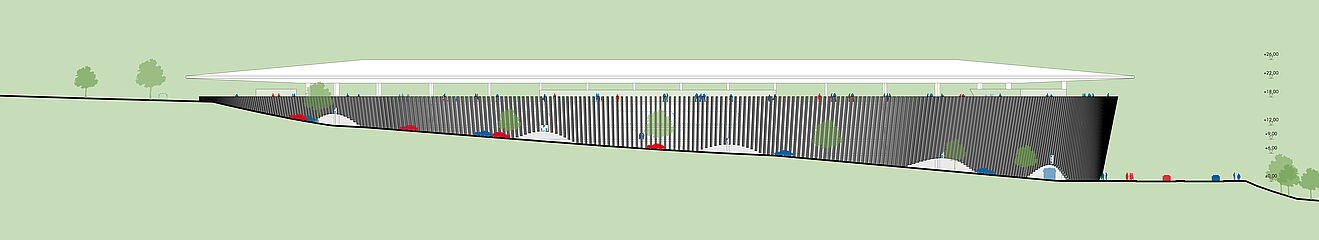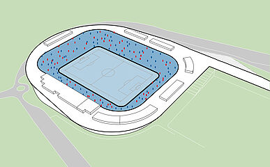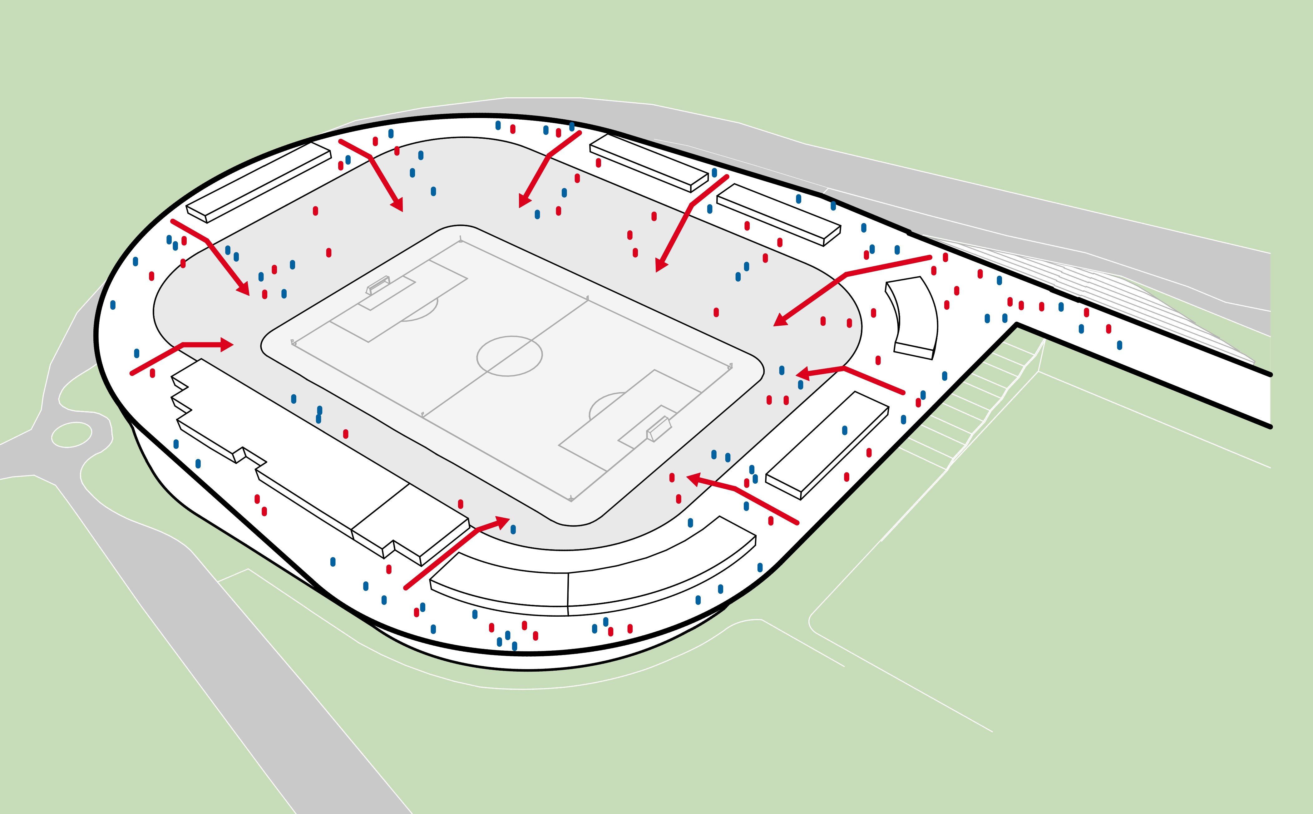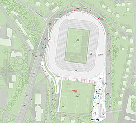 außerhalb der spieltage verwandelt sich das stadion in eine öffentliche städtische plattform mit biergarten, fanzone und dachterrassenbar, die die gemeinde einlädt, den stadion das ganze jahr über zu genießen. eine grüne, artenreiche böschung und ein fußgängerfreundlicher zugang schaffen eine einladende, nachhaltige umgebung – so wird das stadion nicht nur zu einer sportstätte, sondern zu einem neuen wahrzeichen für ostrava.