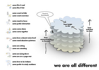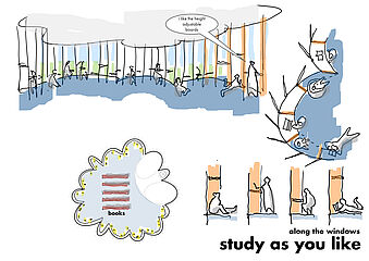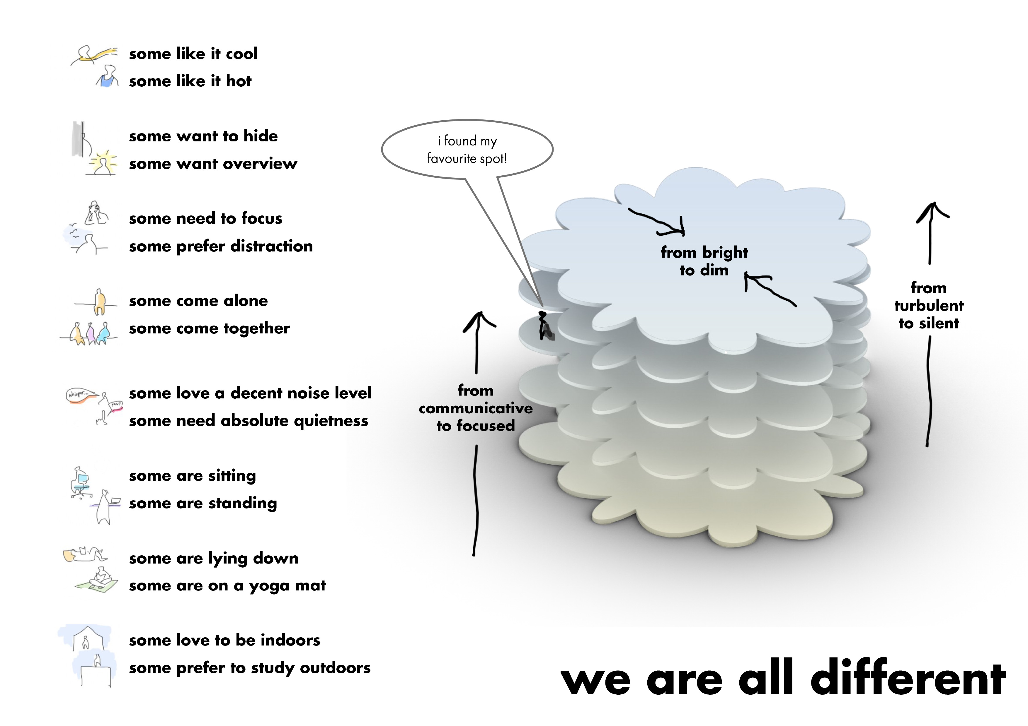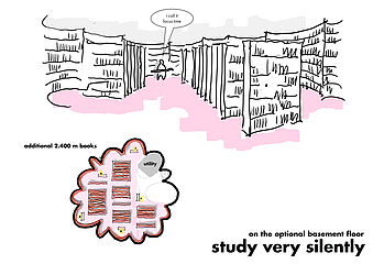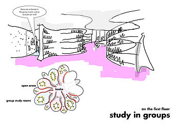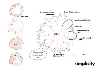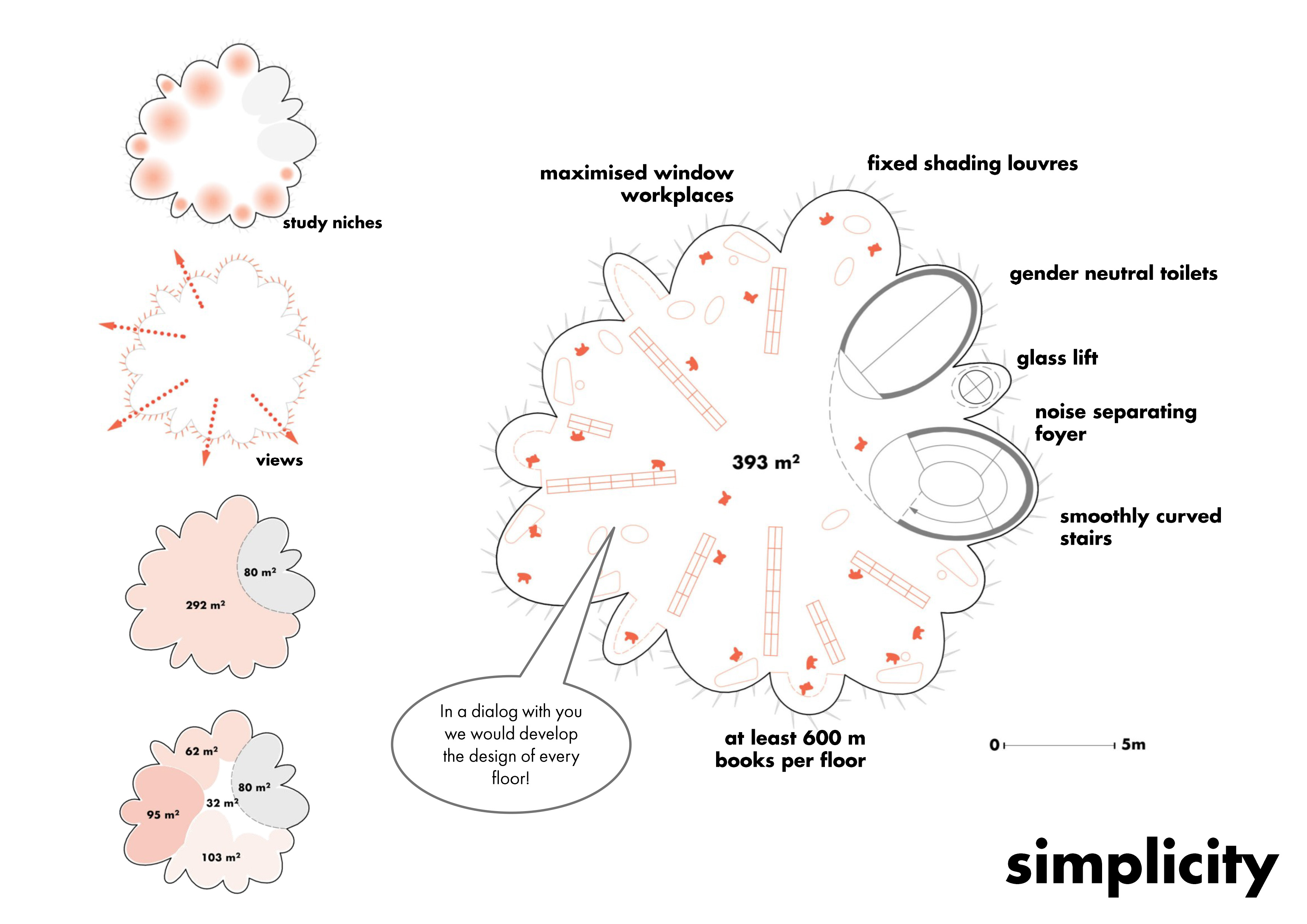 unser wettbewerbsentwurf für die bibliothek des oxford college basiert auf den ideen der zusammenarbeit und der schwarmintelligenz. wir wollten einen raum schaffen, der nicht nur wissen speichert, sondern aktiv zum lernen, zur vernetzung und zur neugierde anregt. jeder raum wurde so konzipiert, dass er den zugang zu wissen maximiert und die studierenden dazu inspiriert, sich gemeinsam mit ideen auseinanderzusetzen.