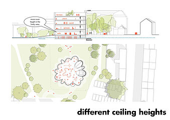 und damit nicht genug. während des entwurfsprozesses haben wir dieses konzept noch weiterentwickelt, indem wir die skizzen von jakob dunkl verwendet und so weit wie möglich ki-tools integriert haben, um mit neuen möglichkeiten zu experimentieren, wie schwarmintelligenz die architektonische gestaltung beeinflussen kann. das ergebnis ist ein gebäude, das nicht nur von einer einzigen vision geprägt ist, sondern von kollektiver kreativität.